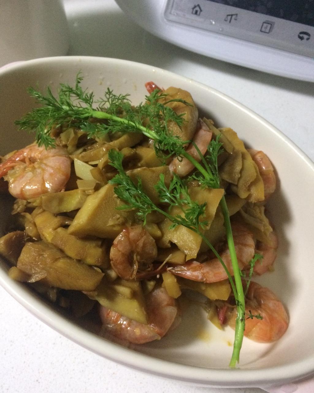 明虾红烧毛笋味道不错诶😋