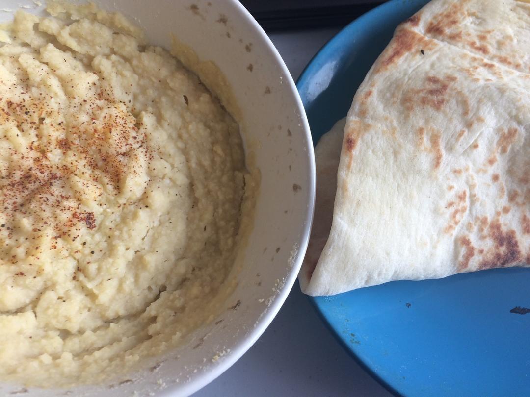 鹰嘴豆泥配Naan饼。自制伪humus😂不过伪的很不像,事先没搜菜谱