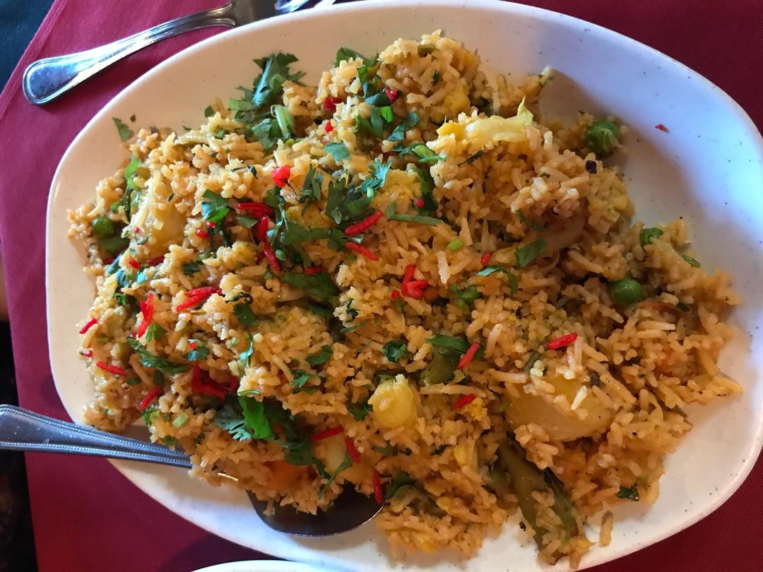 昨晚晚餐约了素食印度小师妹去了一家印度餐厅,从没去过的一家,看Yelp评价非常好,结果等到师妹进来的时候告诉我这原来是一家孟加拉餐厅…反正菜品看起来都是很像啦~不过这家真的不咋地吖…chicken tikka masala吃起来一点辣味都没有,反而偏甜,而且端出来是个非常可怕的红色,这是搁了色素了吧,比我公司附近$6.99一份的CTM简直天壤之别,价钱却是两倍多,完全超低性价比,vegetable biryani也是寡淡无味,完全配不上4.5星的好评,简直让我怀疑yelp评价的真实性 #午餐•2018年4月11日#