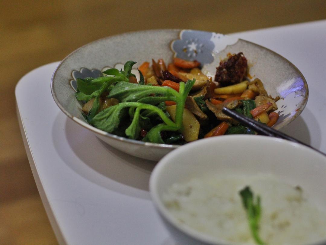 最近好忙 怕自己撑不住 把所有菜加在一起一顿乱炒