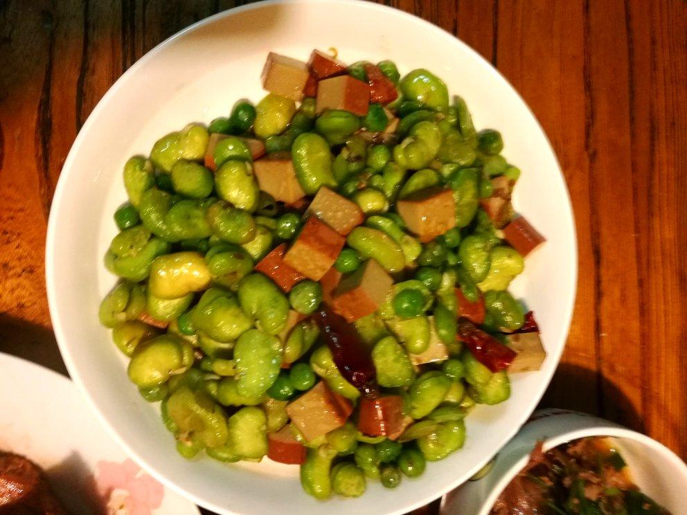 蚕豆豌豆炒鸡蛋干。姑娘还知道丁配丁,不错