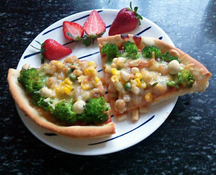 鲜虾披萨搭银耳雪梨露,美好的早餐。
