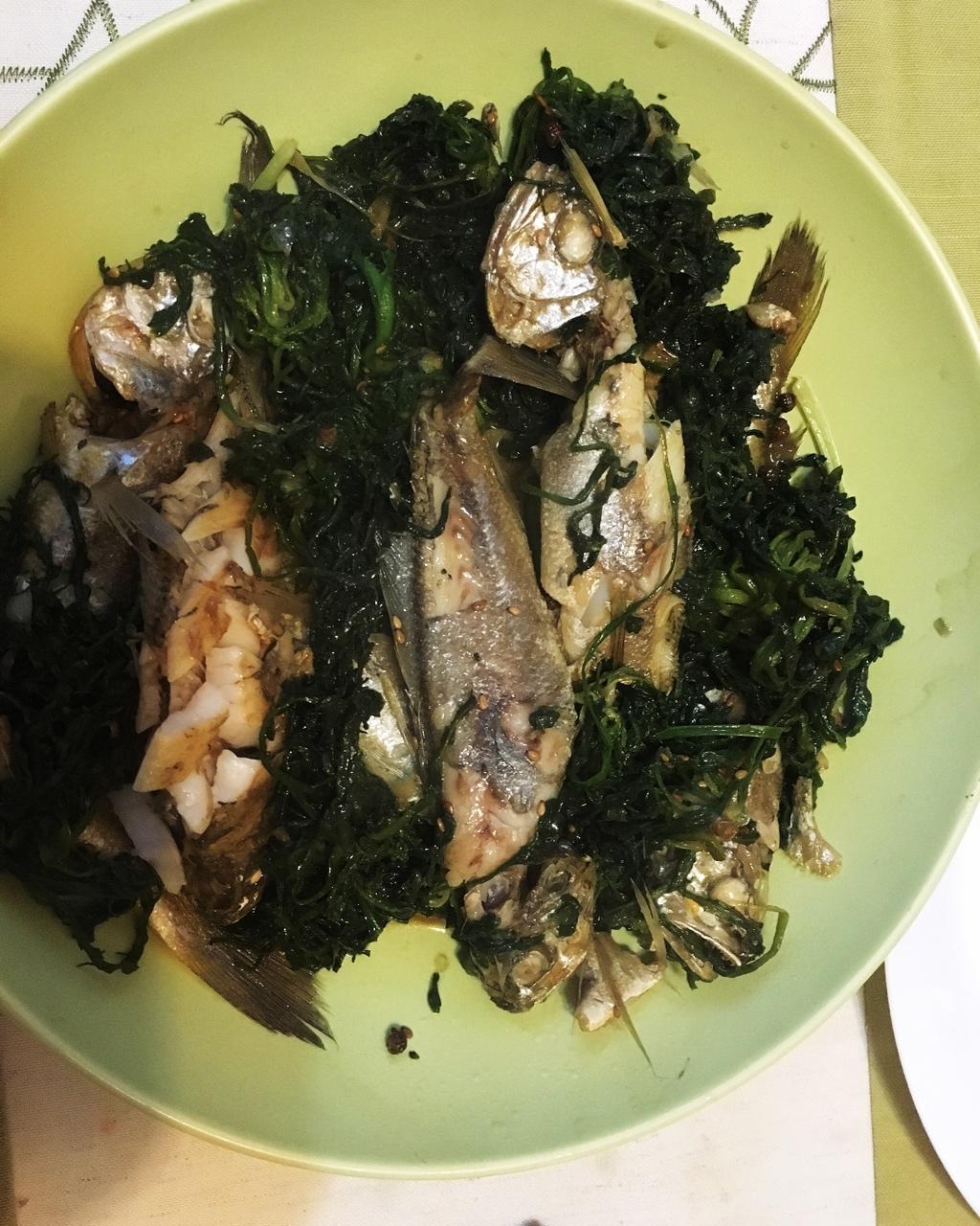 野生荠菜烩小黄鱼,消灭一大碗饭