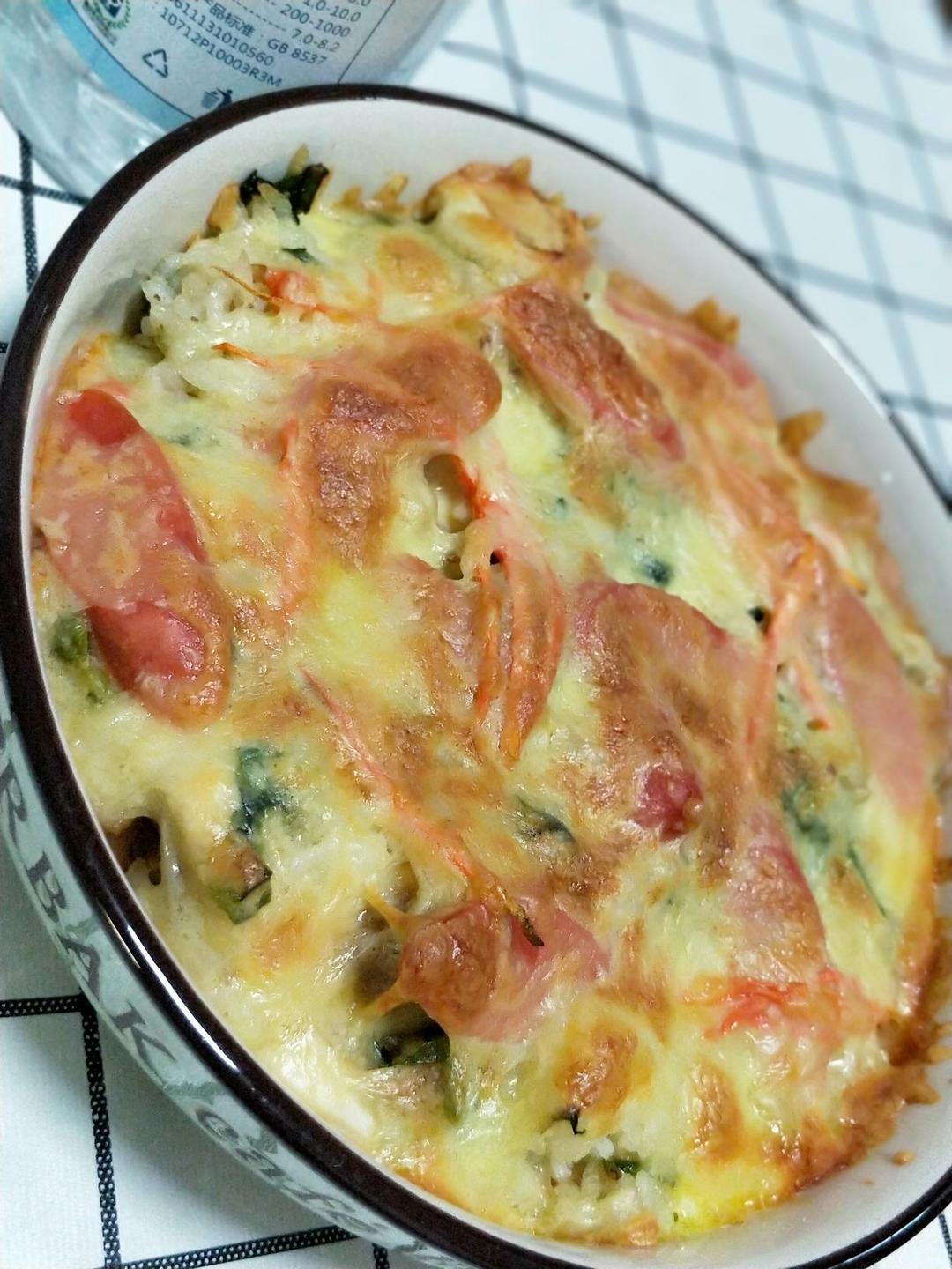 火腿莴苣苗胡萝卜焗饭