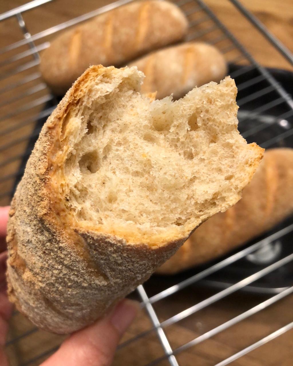 250g高粉换成了170g高粉+80g全麦粉,盐用的地中海海盐,好香!我家先森觉得一次只做四根太少了