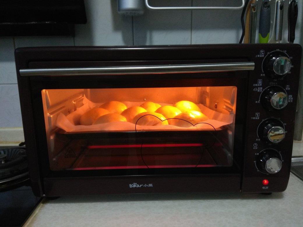 大烤盘中层,铺油纸,油纸上刷油,上火150,下火110,25分钟左右。