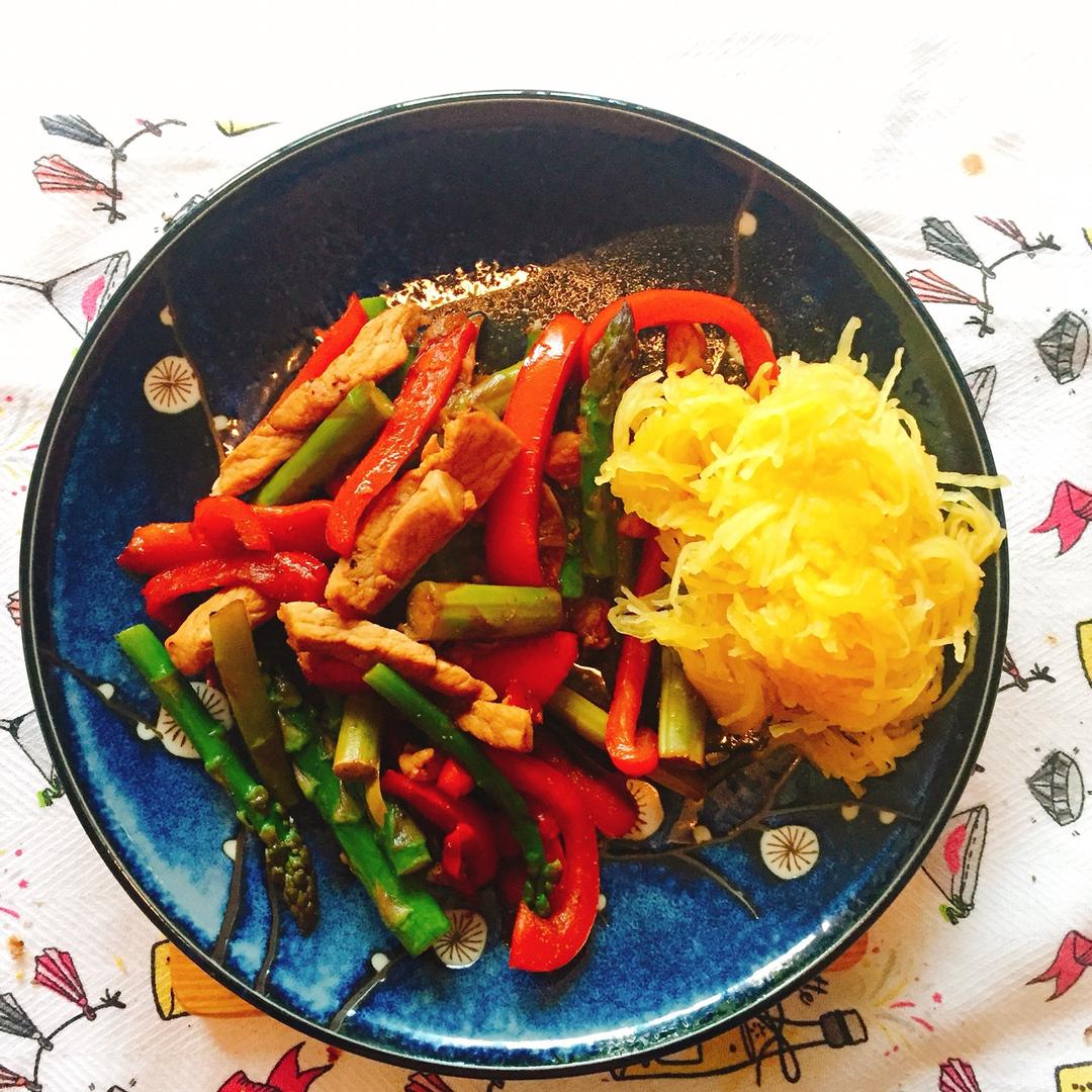 Surah_Li 做过 晚餐•2018年5月2日 Whole30第二天的晚饭:面条瓜配素炒里脊肉。coconut amino感觉就是低钠版的酱油,也没觉得寡淡,只可惜里脊肉还是老了。。。 #晚餐•2018年5月2日##健康三餐##中餐# 2018-05-03