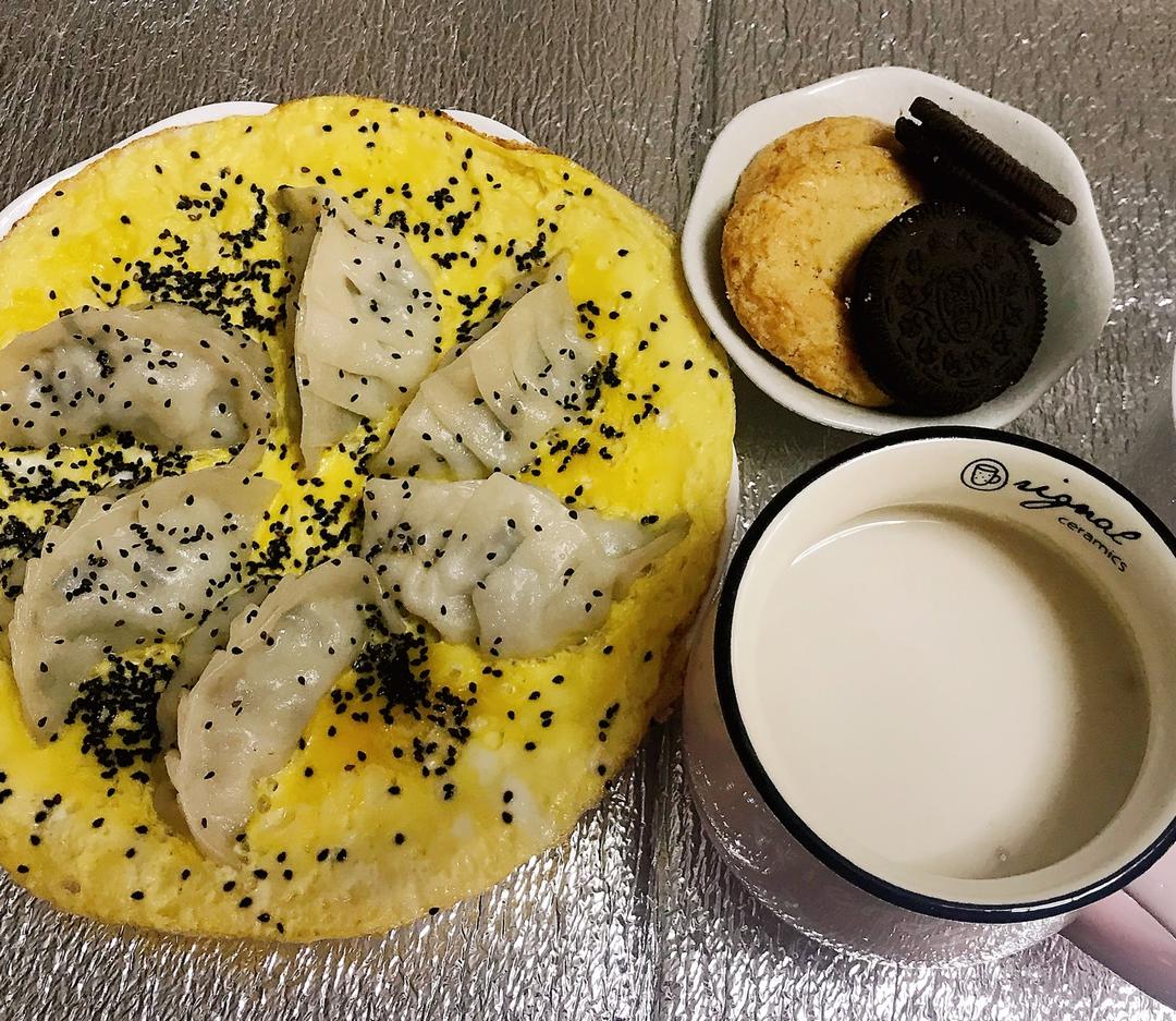周五早餐-抱蛋煎饺,桃酥,奥利奥饼干,燕麦牛奶🍪