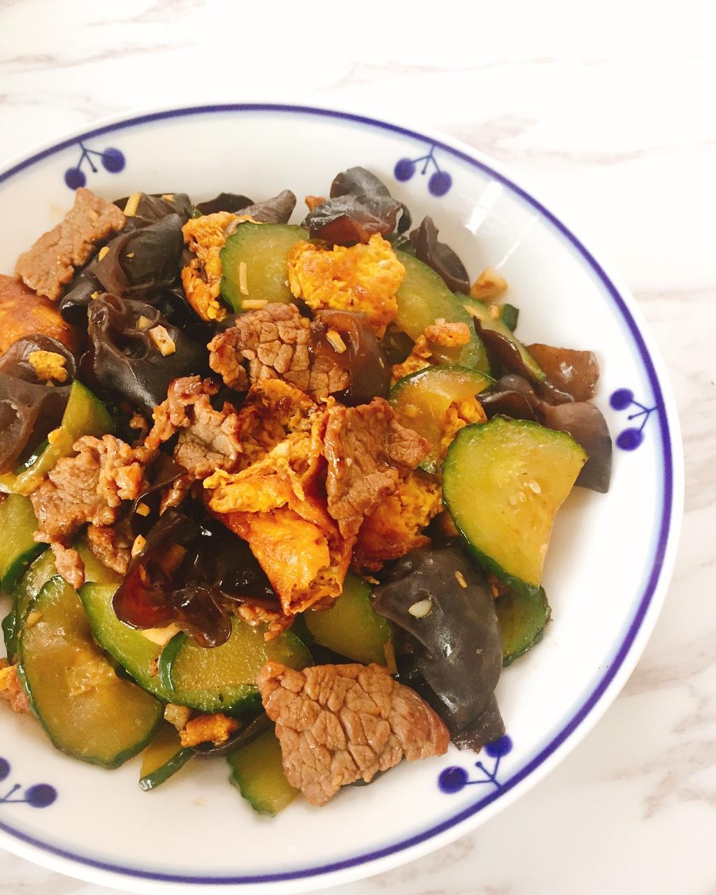 在北京吃的醋溜木须用的是羊肉,我用牛肉代替了也一样好吃。这个菜的重点就是多放油,哈哈。