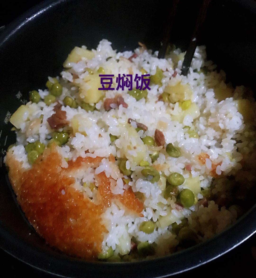 海苔的天空 做过 论电饭煲的重要性 锅哥突然要吃豆焖饭,火腿丁,土豆丁加豌豆翻炒,加入浸泡一小时米入电饭煲,点击煲仔饭,居然还有锅巴[偷笑],晚餐再➕鸡鸭血汤,搞定#论电饭煲的重要性# 2018-05-10