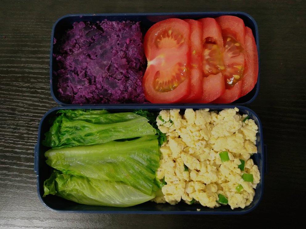 清戈_ 做过 午餐•2018年5月11日 #午餐•2018年5月11日##便当#碳水→紫薯蛋白→鸡蛋滑豆腐蔬菜→水煮生菜、番茄这两天吃了油炸的,有点不舒服。所以今天很清淡,~( ̄▽ ̄~)~ 2018-05-11