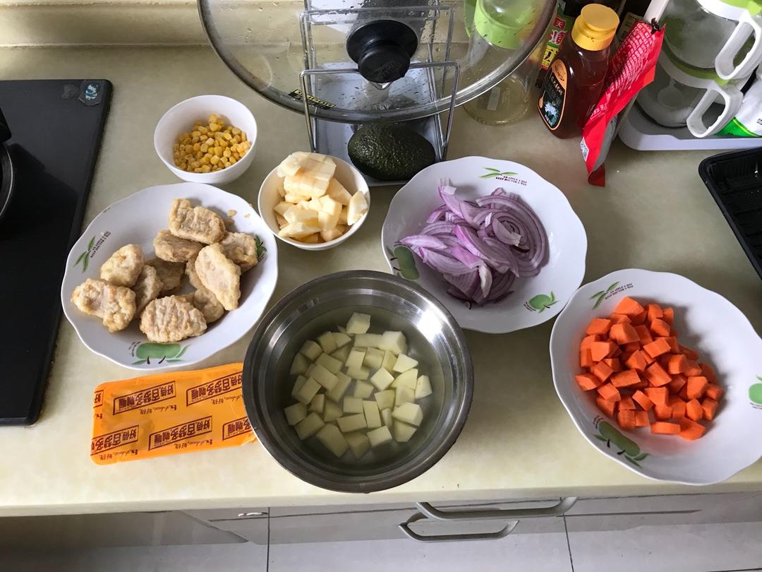 牛奶熬的 加了甜玉米和苹果 用的鸡块 完美!