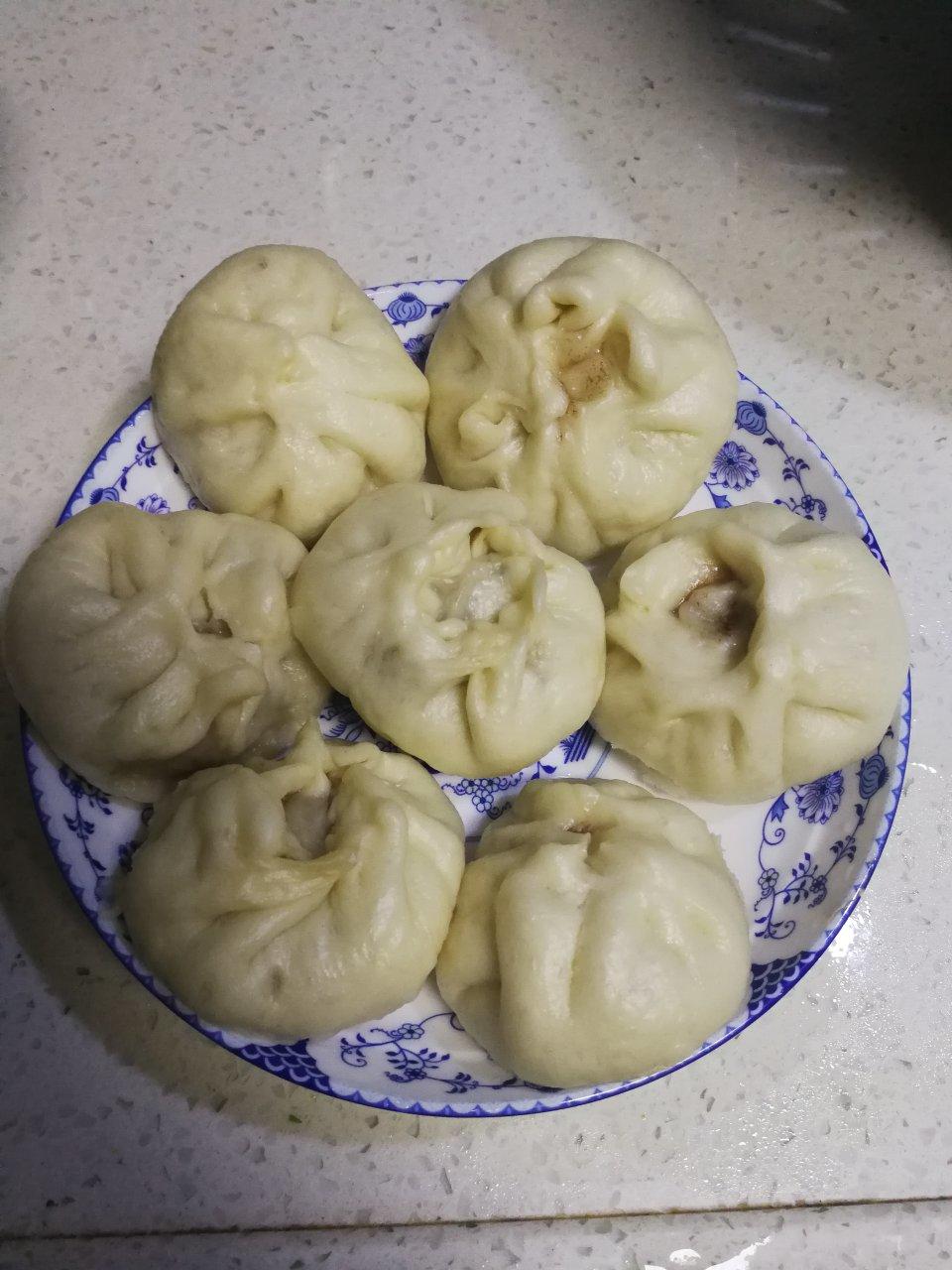 第一次包,褶子有点丑,但是醒完还白白胖胖的,蒸出来怎么会这样呢?还有肉馅为什么都是一整坨的在里面呢?谁能指导一下,谢谢😜
