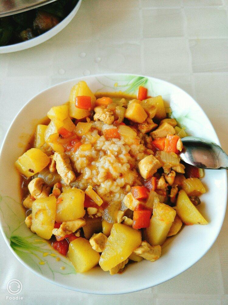 咖喱饭炒鸡美味(๑•̀ㅂ•́)و✧粘稠的咖喱和鲜嫩的鸡肉简直绝配~