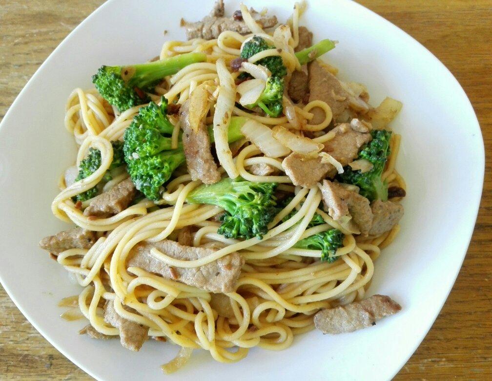 2018年5月13日可口的晚餐,黑椒牛柳炒面条用了豆瓣酱。