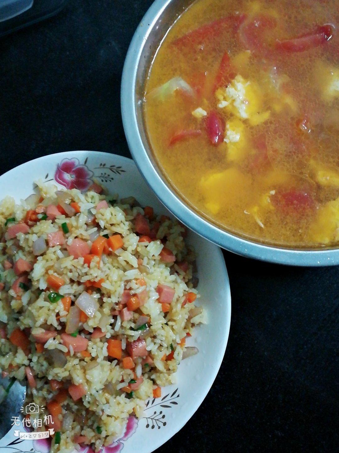 洋葱红萝卜炒饭 西红柿鸡蛋汤🍧🍧