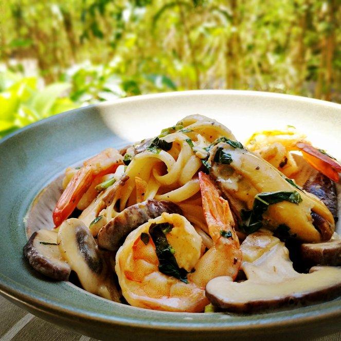 罗勒海鲜蘑菇奶油意面