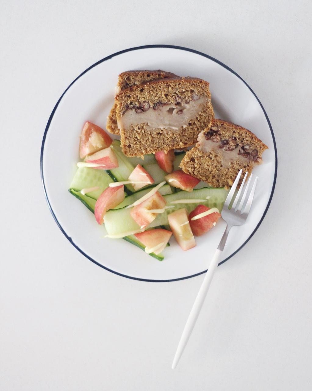 芋泥红豆快手面包+🥒+🍑