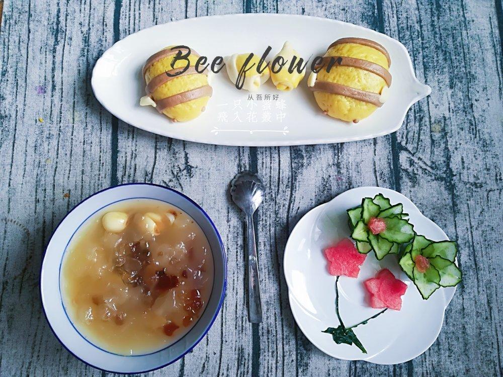 带鱼悠悠的小厨房 做过 早餐•2018年5月28日 #早餐•2018年5月28日#2018年早餐第66天:小蜜蜂馒头+莲子百合银耳羹+黄瓜西瓜花。糯糯的莲子,太适合夏天吃了。[太阳][太阳][太阳] 2018-05-28