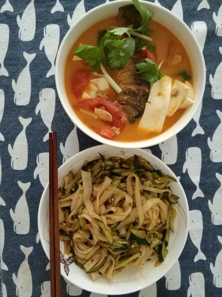 是雅雅呢 做过 如何熬出奶白色鲜美鲫鱼汤 2018/6/6#今日晚餐#感觉自己做饭的时候永远都是这几道菜毫无新意,但是吃得依然很开心哈哈哈,番茄豆腐肉丸鲫鱼汤...哈哈哈,买豆腐的时候看到有卖蒸凉面的,买了半张当今晚的主食了。 2018-06-06