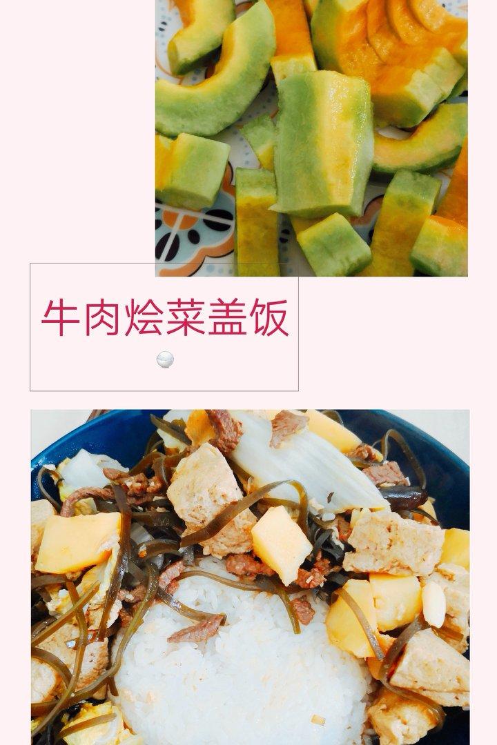 老公给做的爱心午饭,牛肉土豆海带丝烩菜,配个羊角蜜吃吃🙃