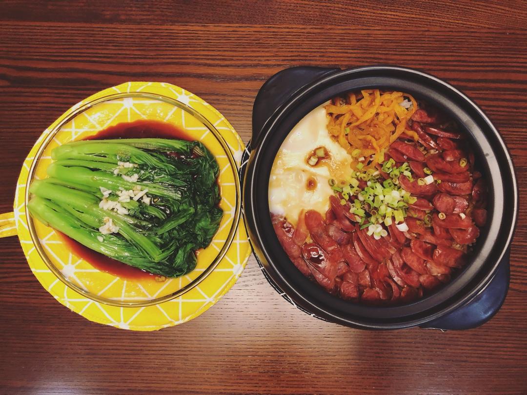 腊肠煲仔+芥菜
