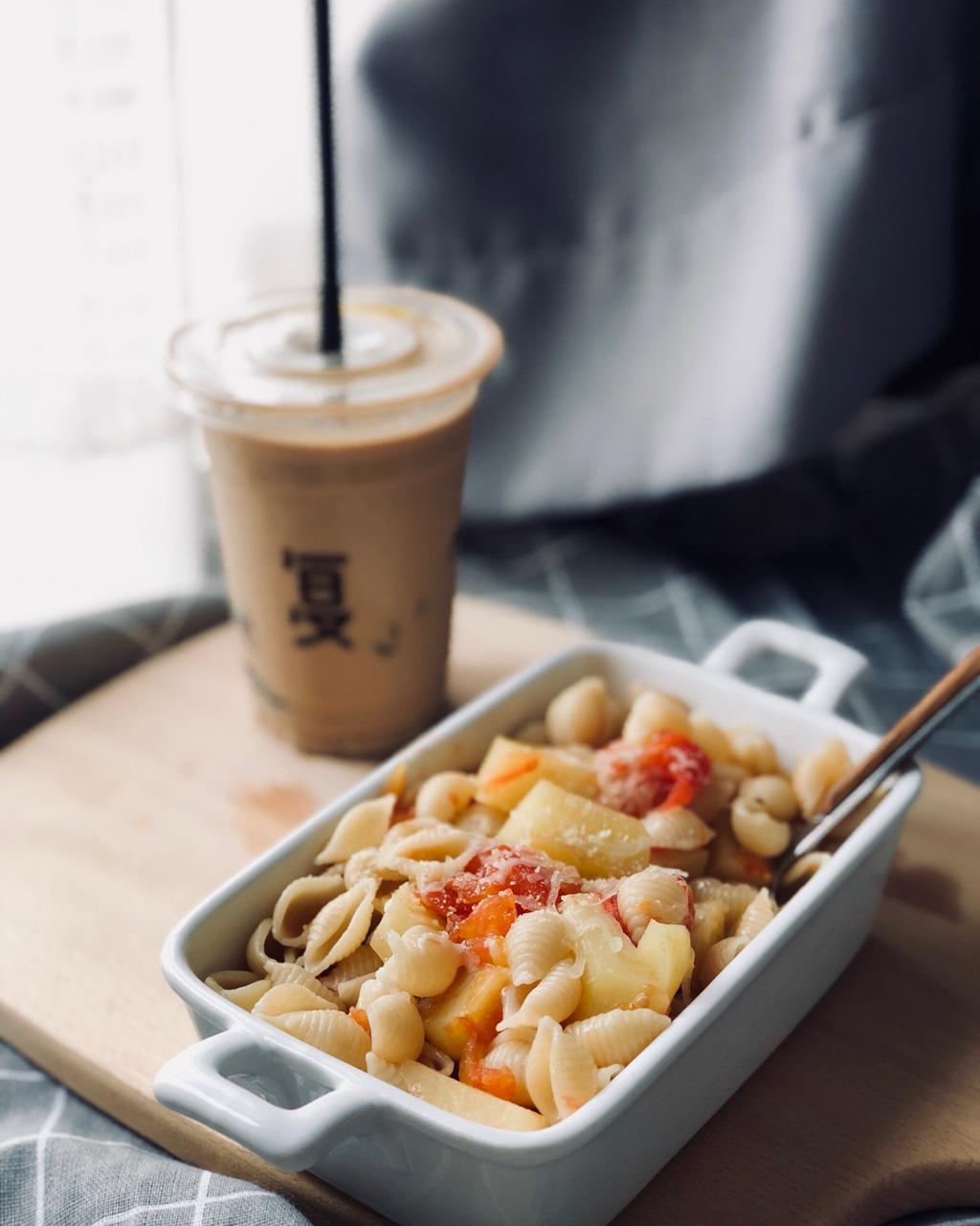 番茄马铃薯煮贝壳粉