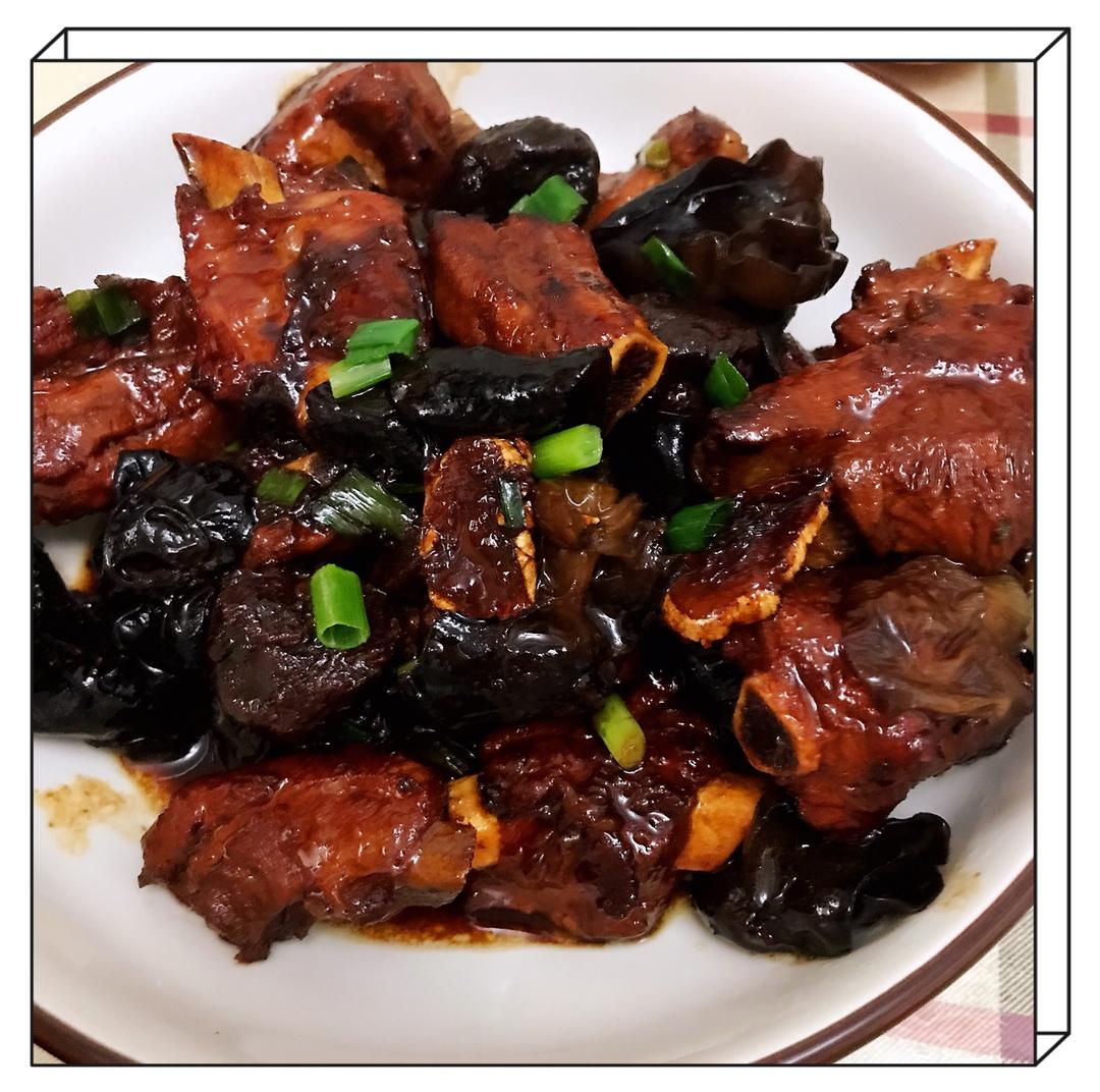 加了木耳。排骨甜甜的很好吃