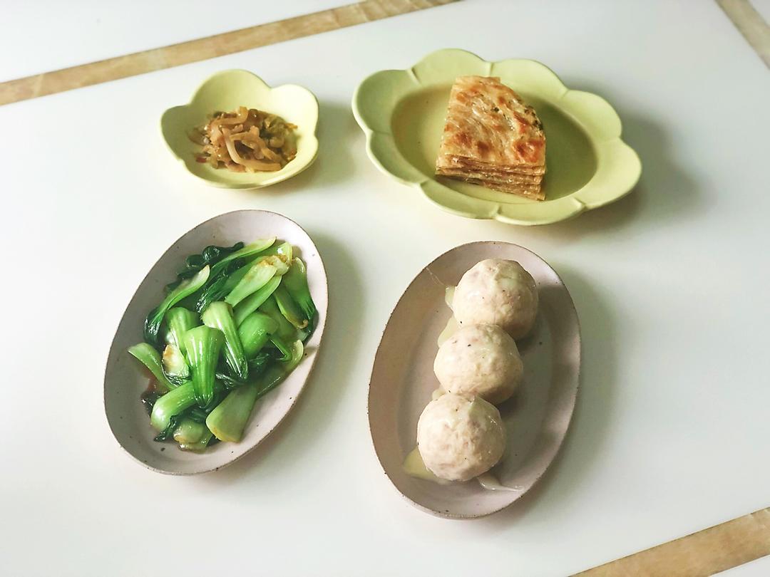 汤圆荷包蛋,金枪鱼土豆泥,葱花饼~早安