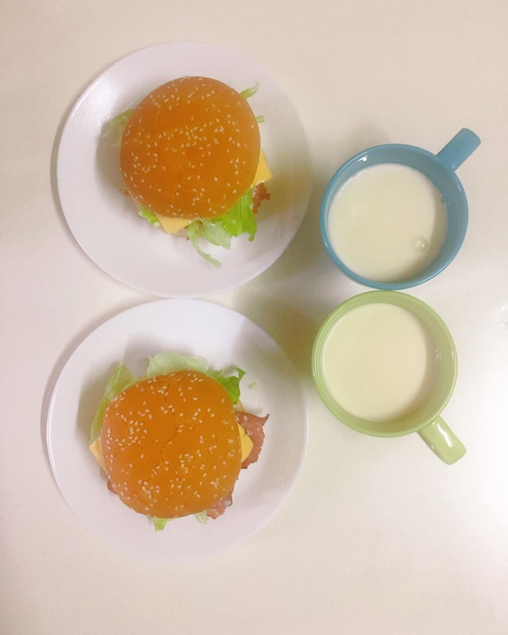 早餐马拉松Day1——培根芝士汉堡+早餐奶