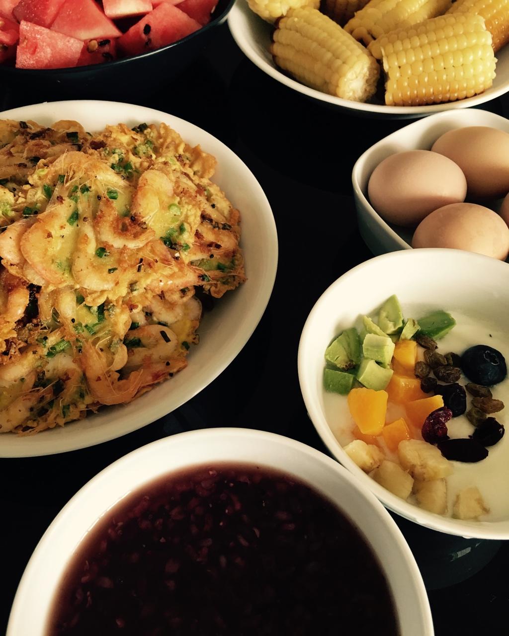 爱皮面团的真水无香 做过 第二届早餐马拉松 Day 2:早安!4元钱的薄皮小鲜虾,两个鸡蛋,几勺糯米粉,一把小米葱,做点小虾饼吧。外面薄薄脆脆、里面软软的,每一口都是鲜嫩美味的虾肉。搭紫米杂粮粥、水果酸奶。 2018-06-26