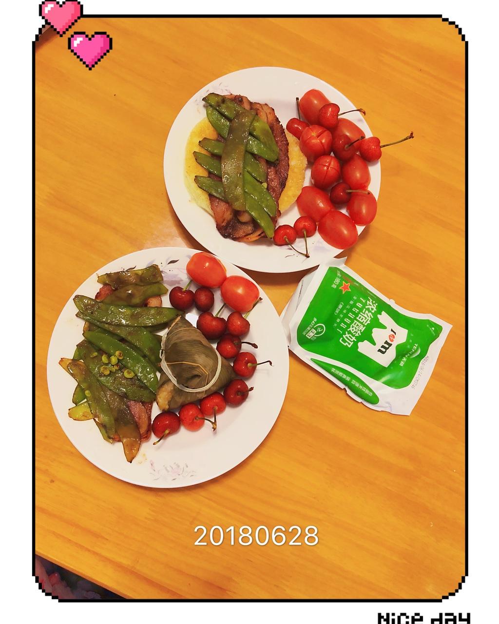 荷兰豆 培根 酸奶 汽水巴,碱水粽,酸奶 小番茄和樱桃做点缀,给我爱的人。让你们元气满满!