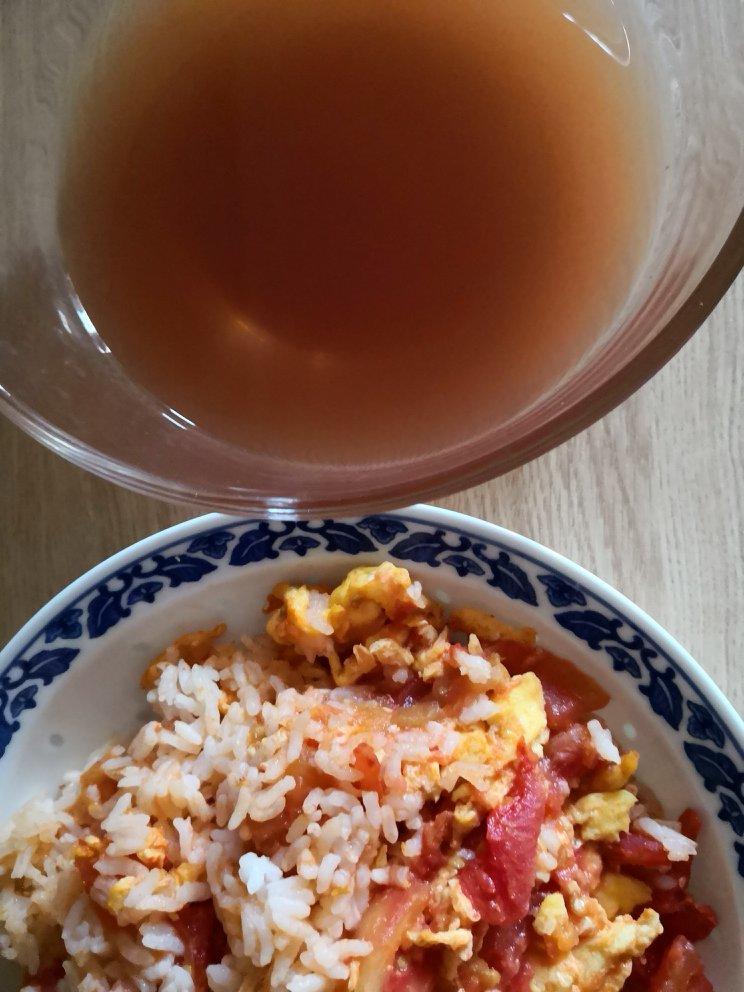 鸡蛋西红柿烩饭 绿豆汤