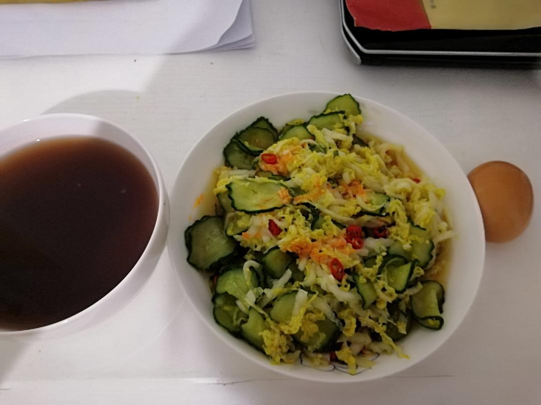 匆匆忙忙,白菜心和黄瓜,还有八宝粥,鸡蛋
