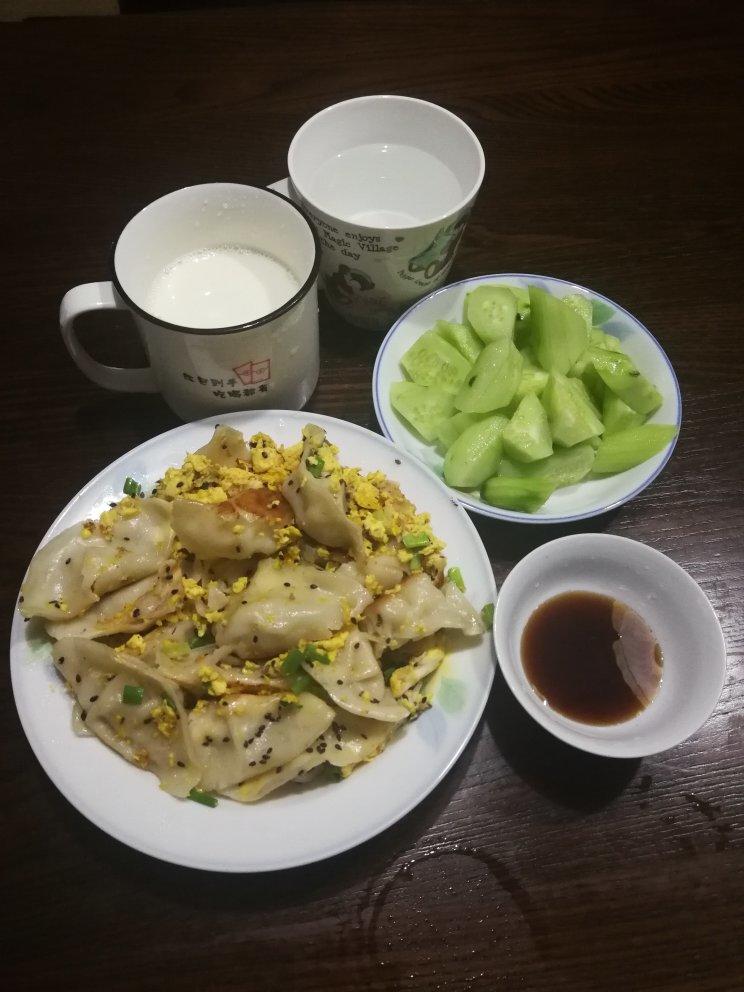 油煎手工水饺,撒上芝麻,满足一天的营养