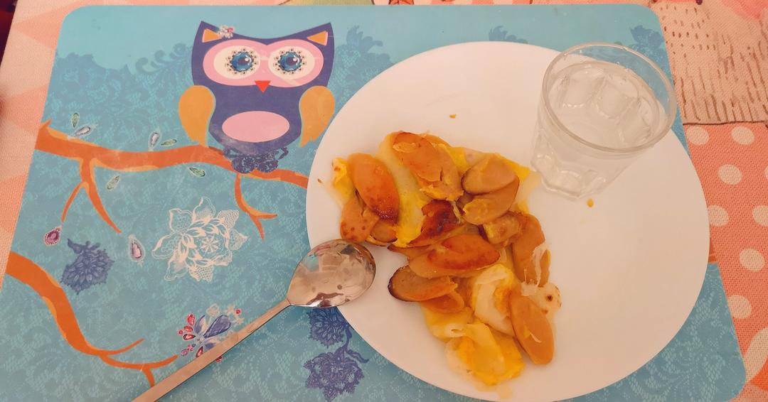 猴子家的筱聪儿 做过 第二届早餐马拉松 #早餐•2018年6月30日##猴子夫妇的小窝##在家瞎鼓捣#在猴子公宿舍只有鸡蛋 面粉 火腿肠 泡面煎饼还被我翻面弄碎了没眼看了昨晚吃了猴子表哥店里一个小姐姐做的凉面 味道超级棒! 2018-06-30