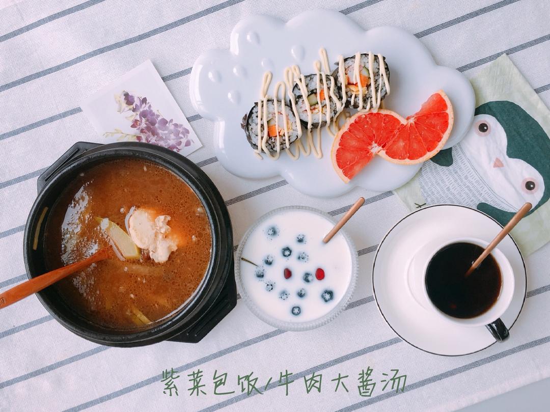紫菜包饭和牛肉大酱汤