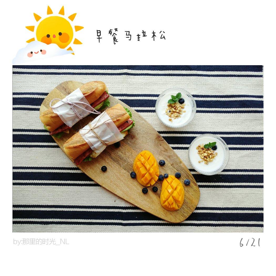 周末双人餐,法棍三明治+酸奶+水果