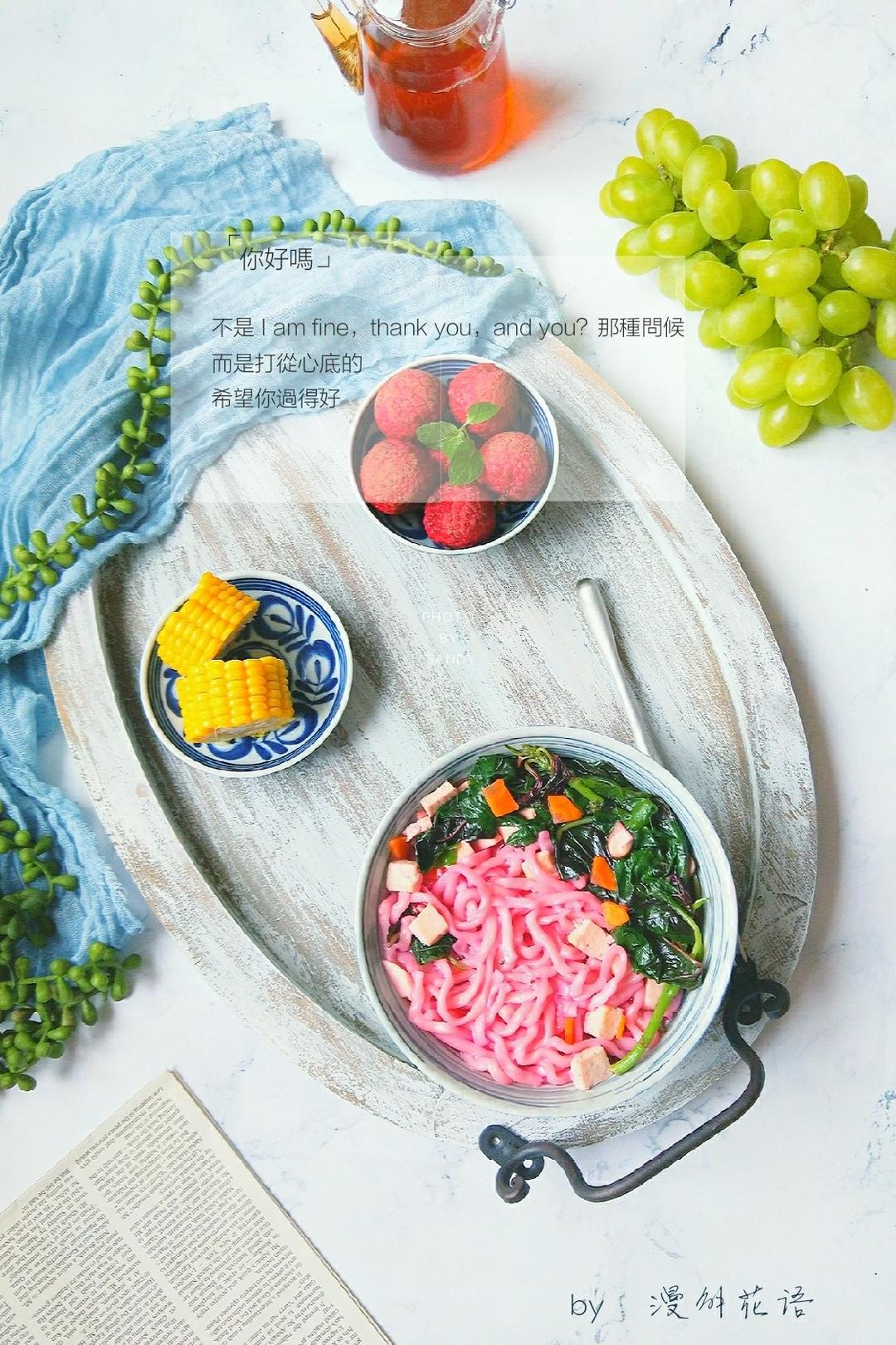 漫解花语 做过 第二届早餐马拉松 #早餐•2018年7月1日##生活点滴#2018上半场已经结束,灿烂了时光也好,虚度了岁月也罢。庆幸的是,等待我们的还有一个完完整整的下半场。往事别回头,往后别将就。正如凯鲁亚克《在路上》中写的那样:“愿你永远年轻,永远热忱,永远热泪盈眶。”六月,再见;七月,你好。2018下半场,告别过去,选好路,出发。今晨有惊艳的苋菜汤面,水煮玉米,荔枝,葡萄,锡兰红茶。 2018-07-01