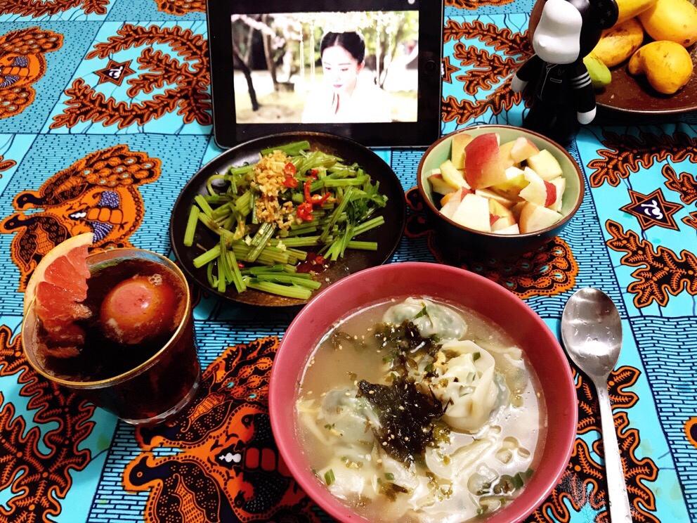 早餐🥣打卡:馄饨,北方的包法南方的调馅...鱼家推荐的西柚咖啡做法,尝试了下味道不错