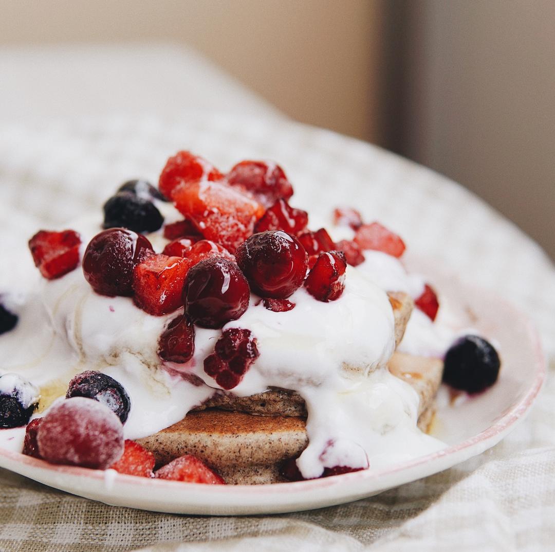 一斗百编 做过 全麦香蕉奶香松饼(少油低糖) 终于睡了个懒觉 九点多爬起来做松饼嘻嘻嘻直接用的新买的全麦松饼预拌粉 最近戒牛奶啦 用杏仁奶替代也很不错哇呜哇 超厚超好吃早上真幸福哇 #早餐•2018年7月8日# 2018-07-08