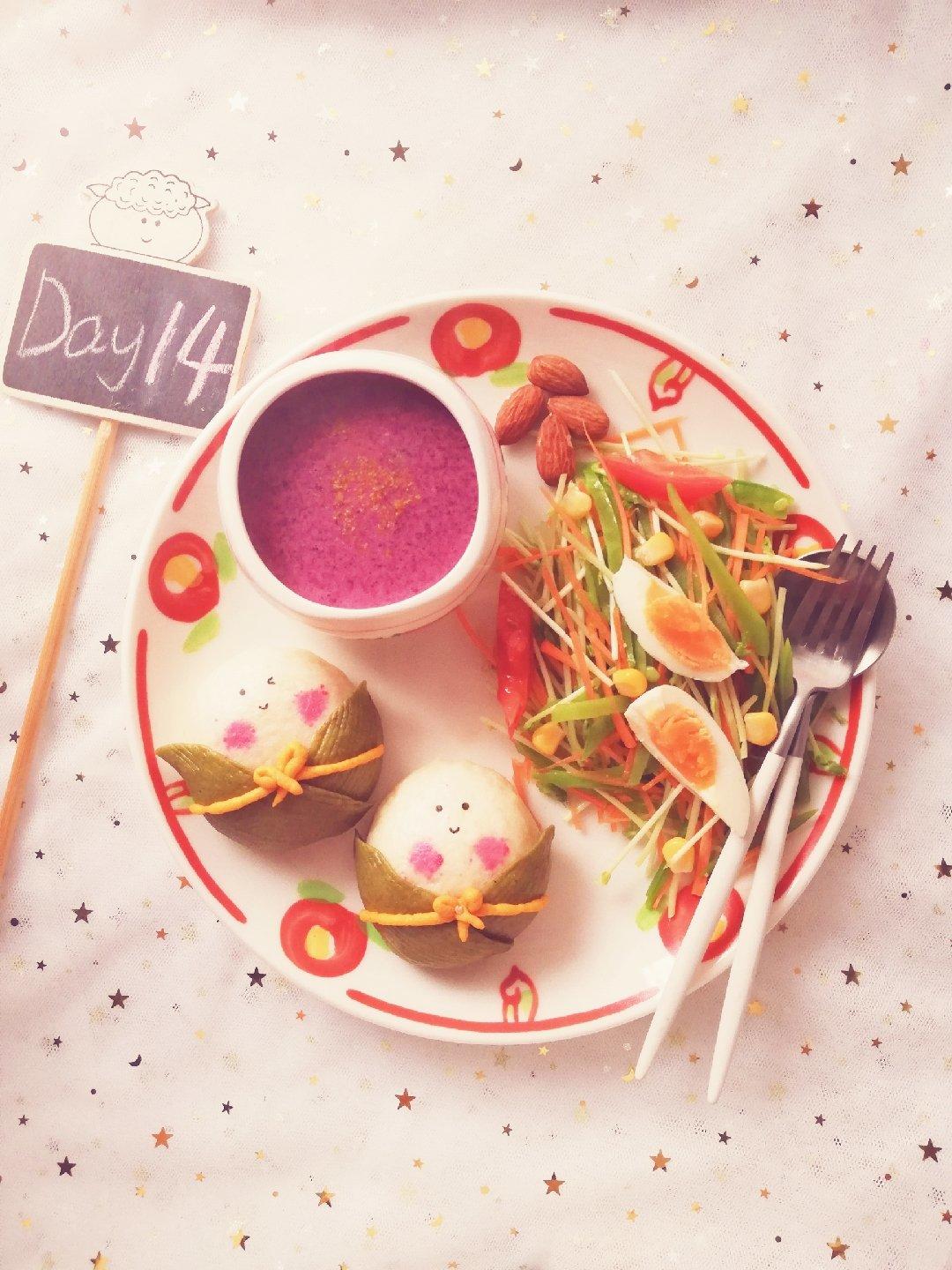 _藍莓優格_ 做过 第二届早餐马拉松 #早餐•2018年7月8日##吃好每1餐#廚房君伱腫麼了??刷了半個多小時打不開網頁...!我...😳😳😳{萌粽饅頭.雞蛋沙拉..莓果酸奶昔.堅果} 2018-07-08