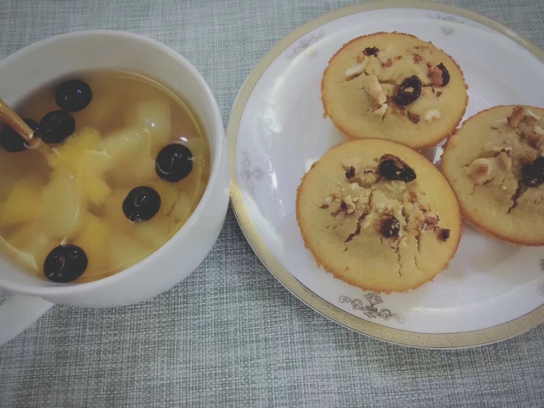 打卡第9天:天热,换个小清新感的早餐,自制的马芬蛋糕,配上自制的水果茶❤️