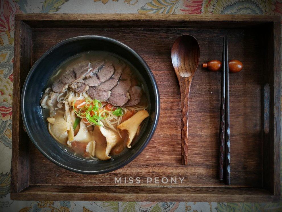 厨房里的环球旅行 做过 第二届早餐马拉松 #牛肉面##卤牛腱#红烧牛肉面,昨晚卤了个牛腱,闻着香气入睡。早上起来15分钟内完成洗切炒蘑菇和番茄,煮面,切牛腱,热卤汤,摆盘。问我如何完成? 三个锅子三个炉头同时进行。 2018-07-11