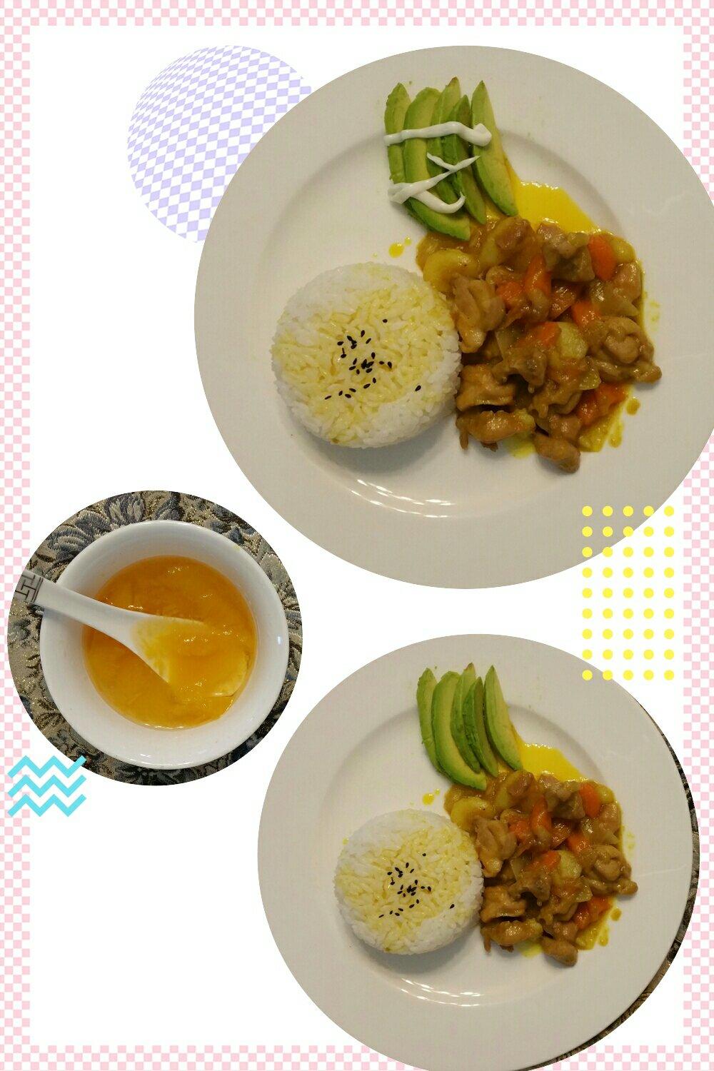 咖喱鸡米饭+牛油果