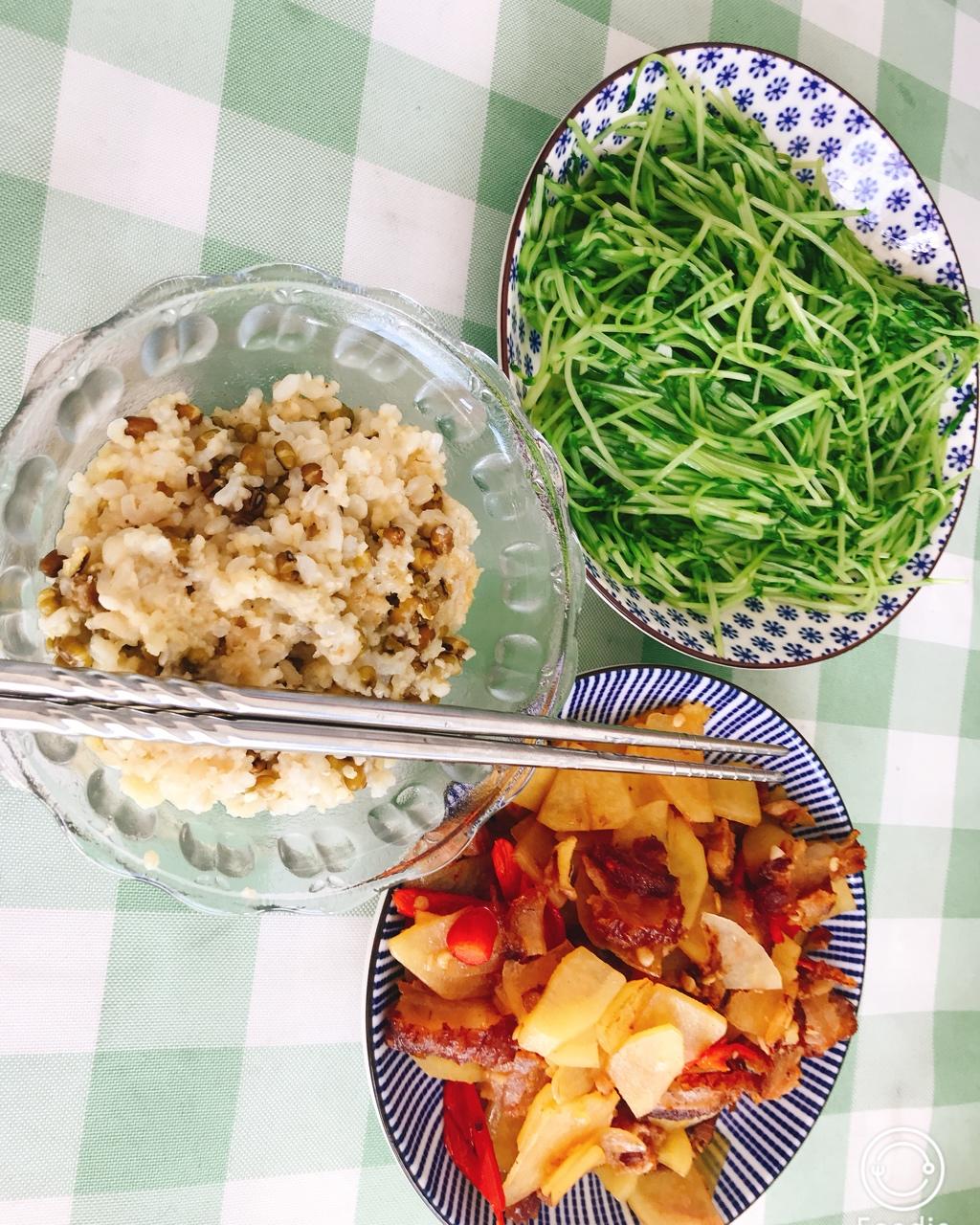 清炒豆芽 腊肉炒土豆 +杂粮饭