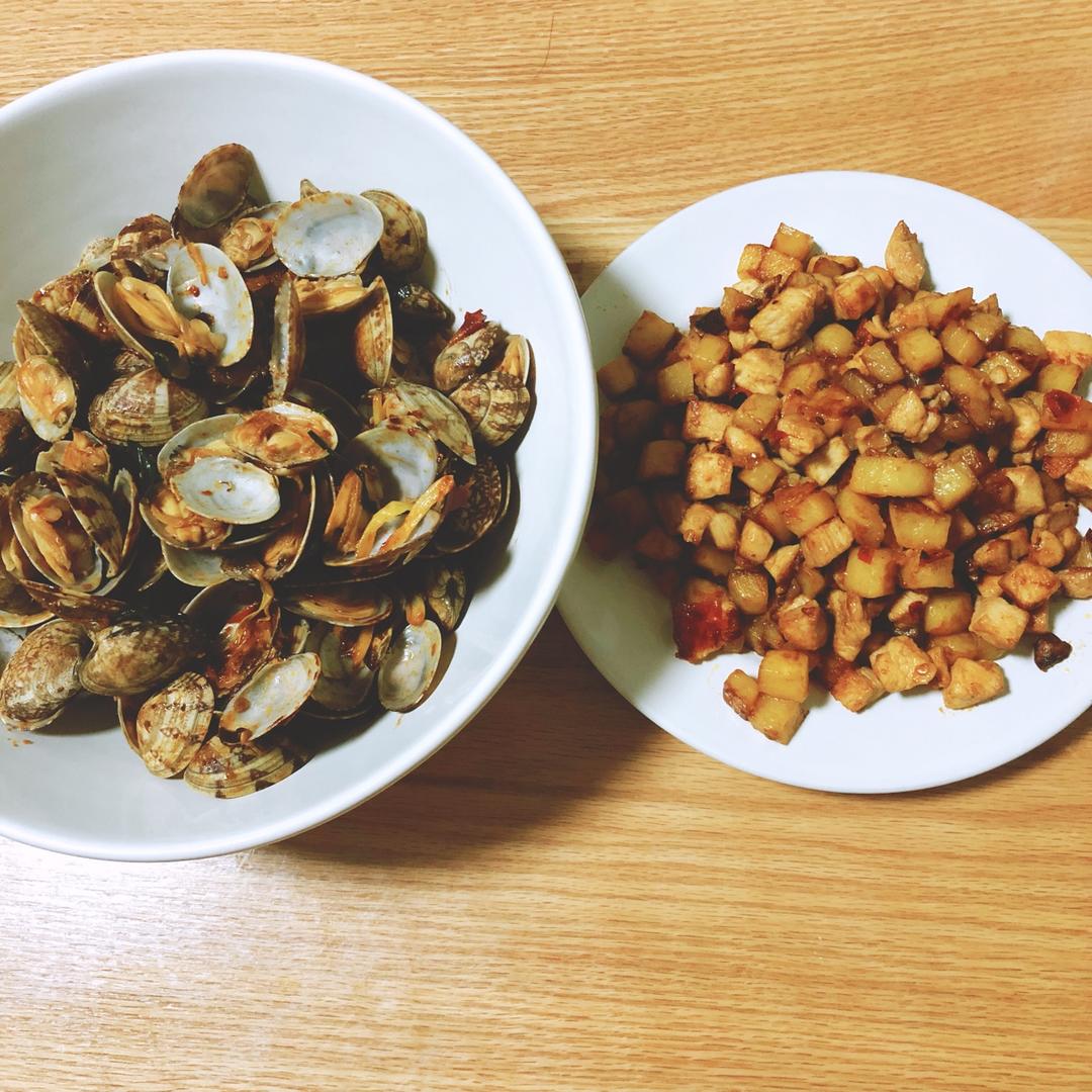 辣炒花蛤+鸡肉土豆丁