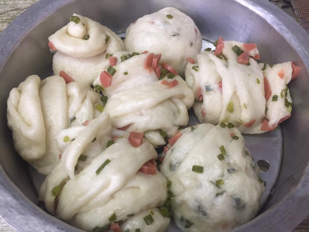 第二次做花卷,自己又放了一点香肠!😋最主要宝宝喜欢吃!