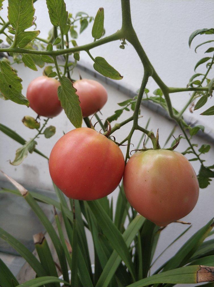 种在花盆里的一颗西红柿收获多多呀!