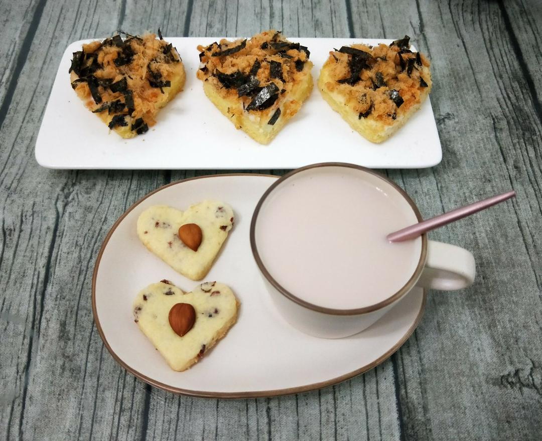 海苔肉松小贝,蔓越莓曲奇,奶茶